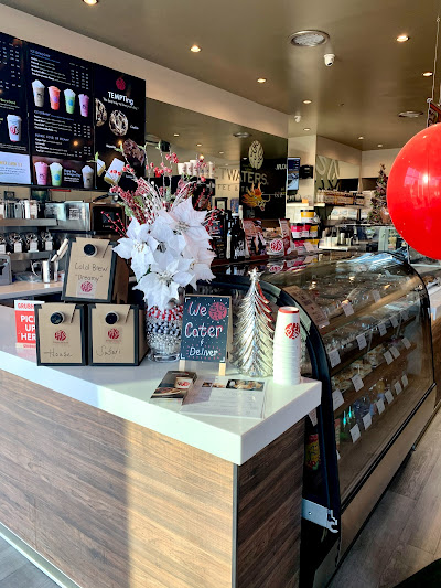 Sweetwaters Coffee & Tea is a cafe franchise offering a wide variety of globally inspired beverages, including classic espresso drinks, signature lattes, and an extensive tea menu. The shop also features a selection of frozen and blended "Ice Dragons," as well as a food menu of breakfast sandwiches, pastries, and pretzels. With a modern interior and a convenient drive-thru, it serves as a quick stop for a broad range of drink options.