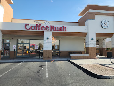Coffee Rush is a long standing establishment and is known for its prime locations. The Chandler location has a scenic patio that overlooks a lake. The menu offers an extensive variety of flavored lattes, mochas, and blended "Frost" beverages, with a wide selection of both regular and sugar-free syrups. In addition to a full coffee bar, the shop serves non-coffee options like Italian sodas and pastries, including baklava.