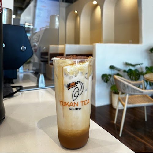 Tukan Tea offers a unique, interactive boba experience with its self-serve tea and topping bar. Guests can pour their own custom drinks from a rotating selection of milk and fruit teas, then add as many toppings as they like from a diverse assortment. The bright, modern space provides a welcoming environment for creating a personalized beverage, with the final price determined by weight.