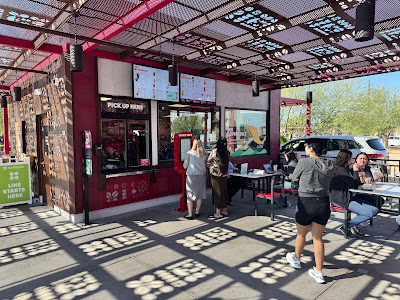 Caffenio is a highly popular coffee chain from Sonora, Mexico. It has opened its first U.S. location in Mesa operating as a high volume drive-thru and walk-up kiosk. The brand sources its own "Pluma Hidalgo Oaxaca" espresso and offers an extensive menu of hot and cold beverages. The offerings are heavily centered around sweet and flavored drinks, such as the Kfreeze (a cappuccino frappe), Rockino, and various Blended drinks made with ice cream, alongside unique specialties like Horchata and Oaxaca Coffee.