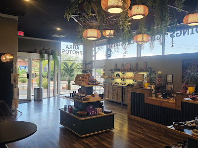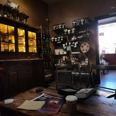 Black Potion Sedona is a coffee shop combined with a crystal and metaphysical boutique. The shop has a relaxing new age atmosphere. The menu features classic espresso drinks and creative signature lattes like the Smoked Praline and Madagascar Vanilla. It sources its specialty coffee from a Phoenix-based roaster partner (Peixoto Coffee) whose beans originate from a family farm in Brazil. In addition to coffee the shop sells crystals and offers services such as aura readings.