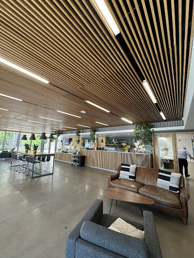 Located on the serene campus of Valley Presbyterian Church, Awaken Cafe offers a bright and spacious environment that is open to the public. The cafe features a large beautifully designed indoor space that flows onto a peaceful patio with a grassy lawn and play equipment for children. The menu includes a full selection of espresso drinks, cold brew, and teas, alongside breakfast items like burritos, bagels, and pastries.