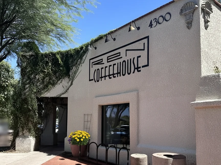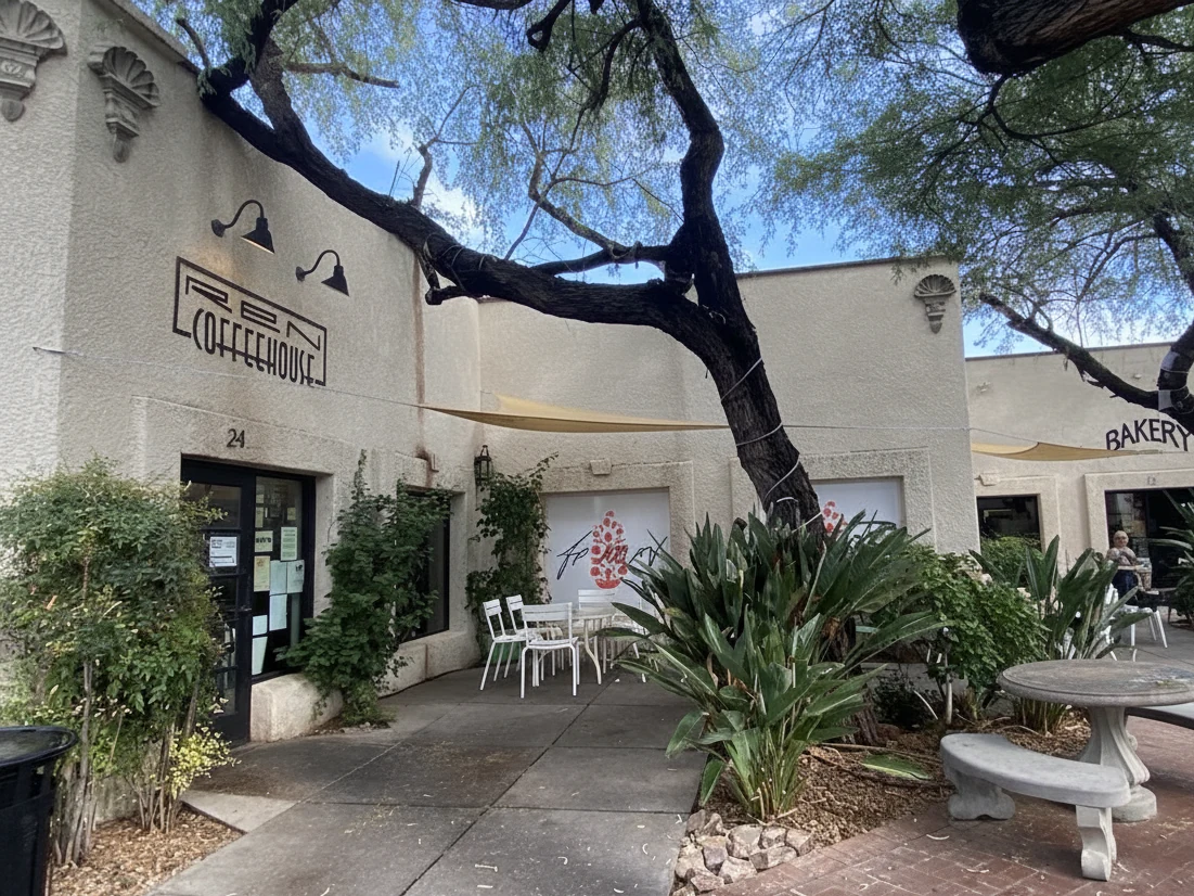 Located in the beautiful St. Philip's Plaza near the Rillito River Loop, Ren Coffeehouse offers a cozy spot with a charming atmosphere. The cafe features a full food menu with a wide range of toasts, salads, paninis, and breakfast items, alongside a large beverage selection that includes coffee classics, smoothies, and specialty lattes. The space offers limited indoor seating and a large, popular, pet-friendly outdoor patio within the plaza's courtyard.