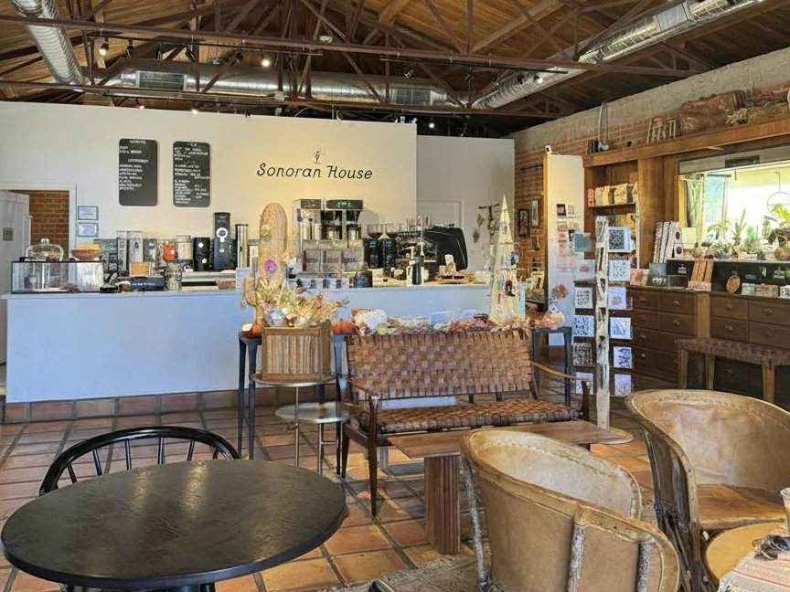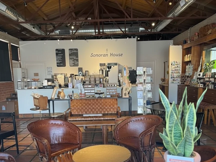 Sonoran House is a lovely Tucson coffee shop and local market. It has a cozy and community-driven atmosphere. The shop proudly serves its own line of small-batch sustainably roasted coffees. They offer their own Sonoran Roast for espresso. The menu includes classics like a Cortado and creative drinks like a Prickly Pear Matcha. It is also a boutique featuring handcrafted goods from over 50 local vendors.