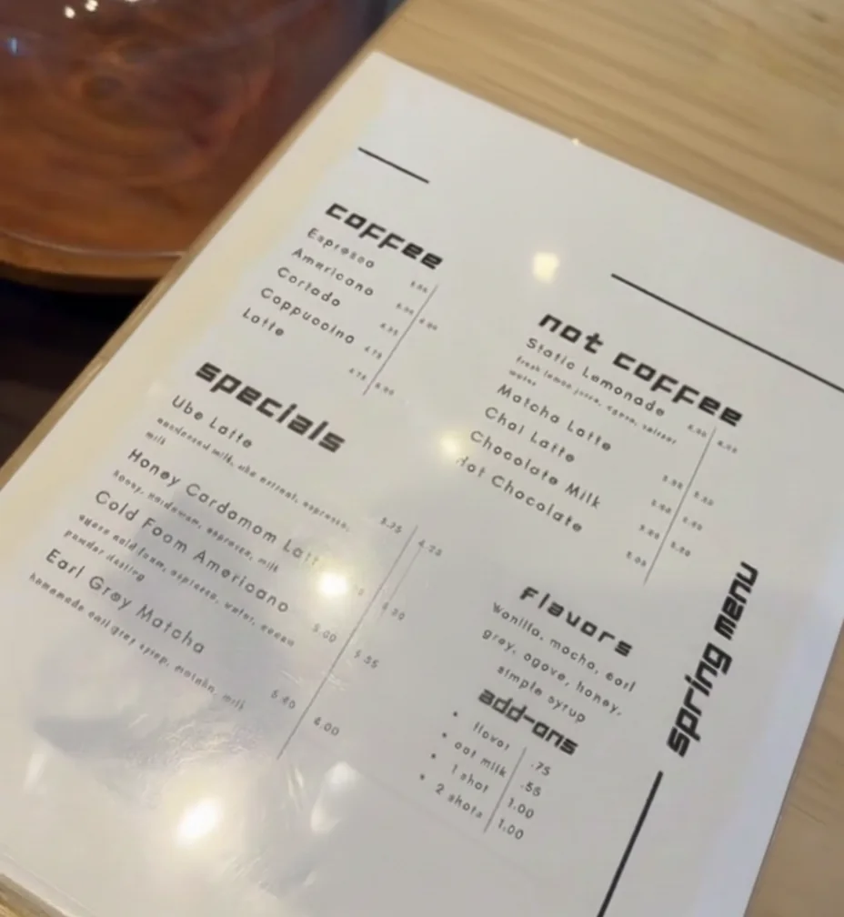 You can order the standard Americano, but look closer at the menu. I always consider trying the Iced Rose Latte or the unique Honey Bee Latte. Every espresso drink arrives in specialty glassware. That inclusion of sparkling water on the side? That is the subtle mark of a serious coffee program.